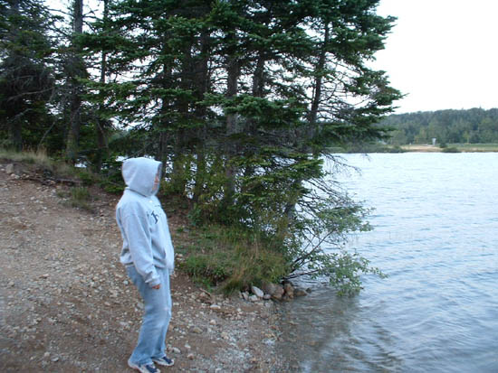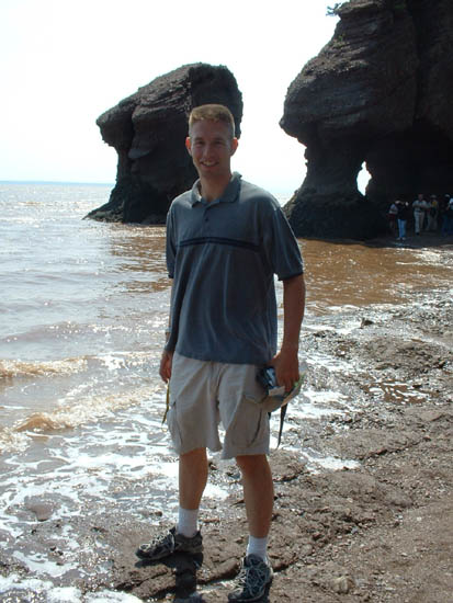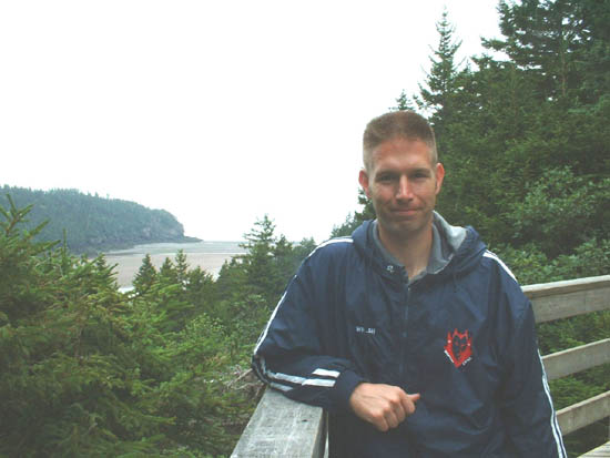Val standing on windy cliff edge at Cape Split, Nova Scotia |