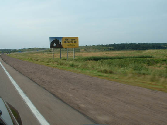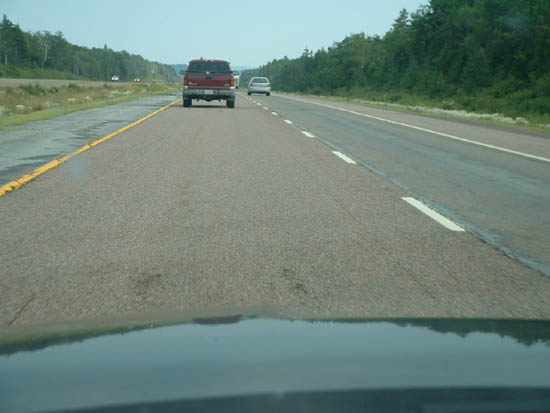 Crossing back into New Brunswick I ran over the tire right after this. Had the camera been aimed left, you'd see it. |