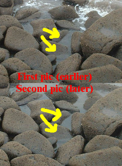 Tide was going out, these pics were taken 1 min apart There's a small difference |