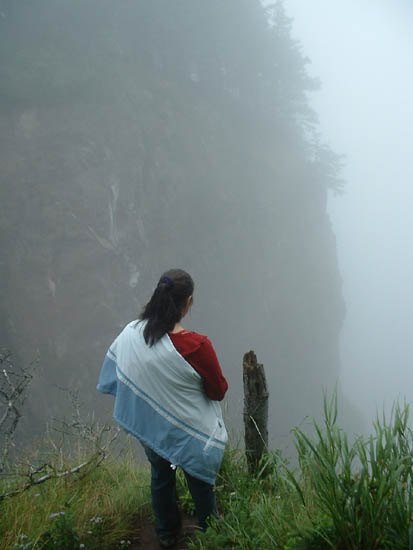 "The Lookout." Of course the fog starts to clear once we leave. We couldn't even see the railing when we drove by earlier, in the morning. Nice view, though... |