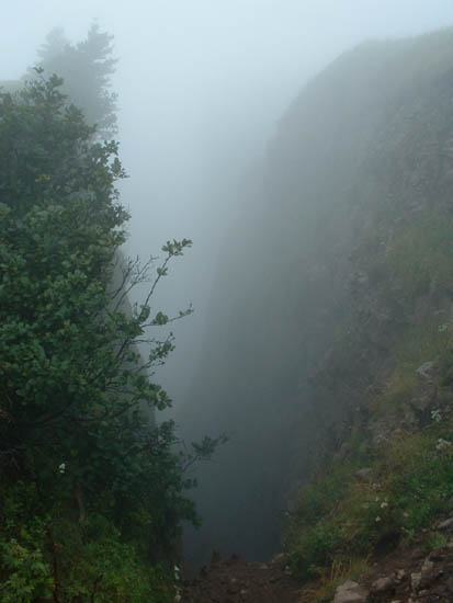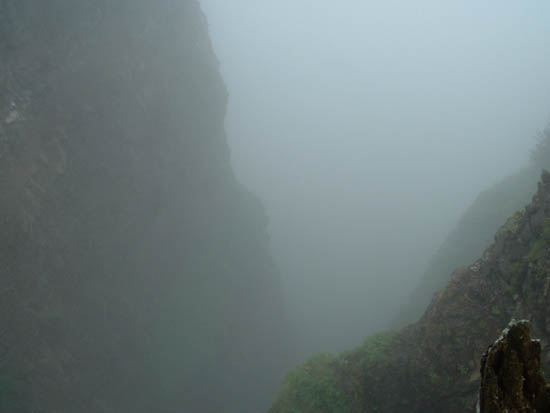 Another cliffside fissure. Watched a raven gliding down into the mist |